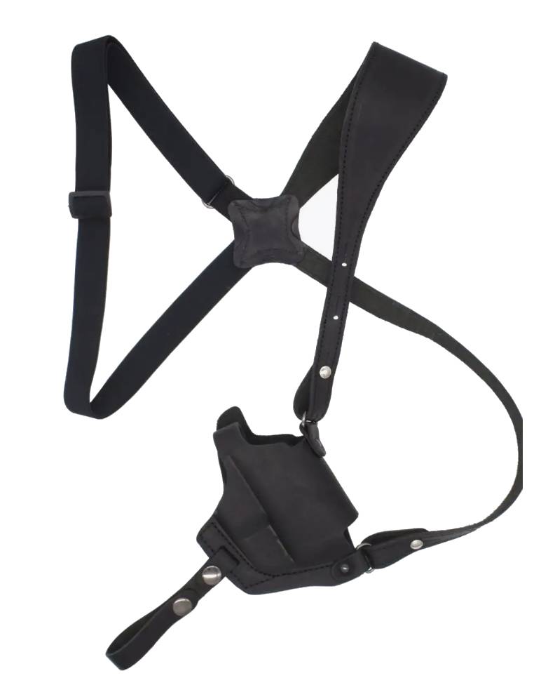 Оперативная кобура для бесствольного пистолета Оса-ПБ-4-2. Кобура оснащена плечевыми ремнями облегченной конструкции: основной плечевой ремень (несущий) изготовлен из кожи и имеет расширение в районе плеча, что позволяет снизить нагрузку на плечо. Второй ремень изготовлен из эластичного текстильного жгута. Оба ремня регулируемые по длине. Сама кобура оснащена страховочным хлястиком предотвращающим выскальзывание пистолета из кобуры. Открытие хлястика производится большим пальцем. Кроме того кобуру можно носить на поясе. На задней стороне кобура имеет шлевку для брючного ремня шириной до 50 миллиметров и дополнительные прорези в шлевке для ремня шириной до 35 миллиметров. Кобура для правши - пистолет располагается под левым плечом.