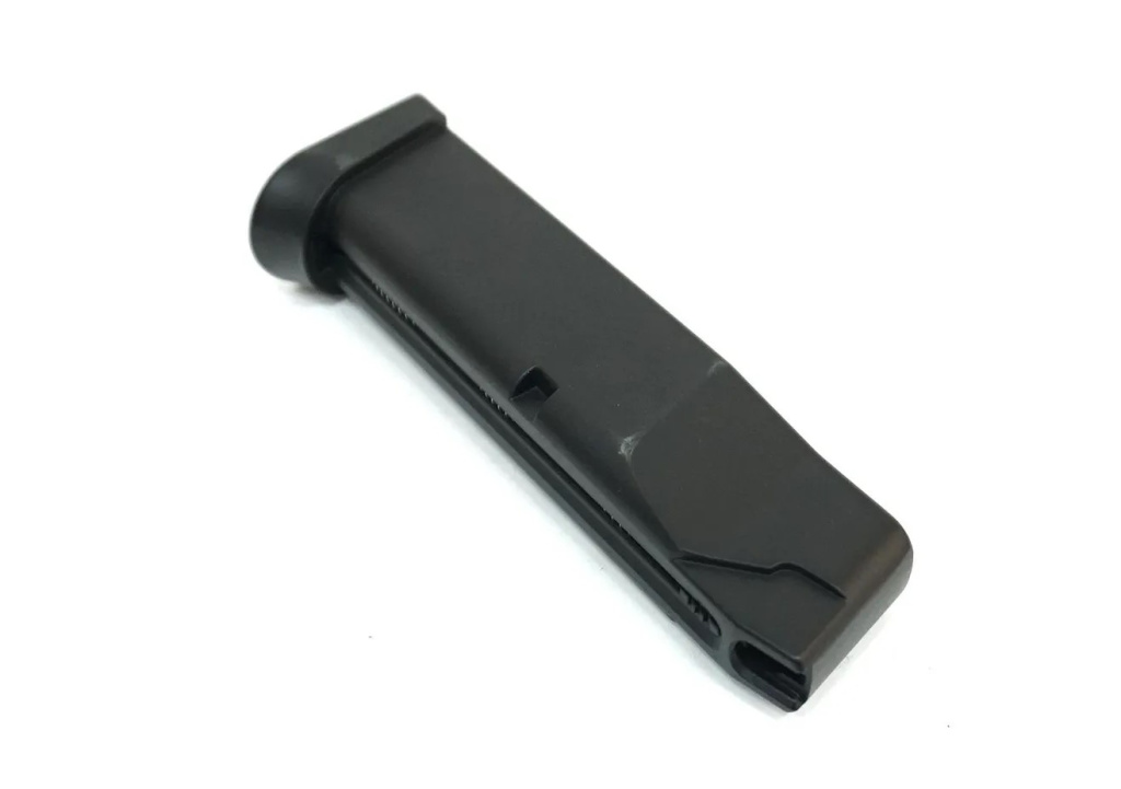 Магазин для пистолета TRS 24/7 от фирмы Gletcher, США, предназначен для снаряжения стальной сферической дробью ВВ (металлические шарики), калибра (мм/дюймы) 4.5/.177, баллоном СО2 12гр. и использования с газобаллонным пневматическим пистолетом Gletcher TRS 24/7. Магазин комбинированный, т.е. в его корпусе располагается газовый клапан, отсек для размещения баллончика СО2, скрытый прижимной винт и подпружиненный толкатель шариков.