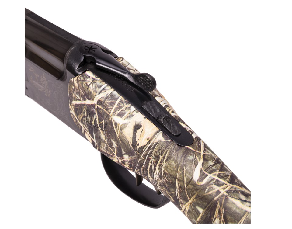 В механизме удаления гильз используются экстракторы. Каналы стволов и патронники хромированные. Прицельные приспособления - вентилируемая планка и мушка. Приклад и цевье выполнены из древесины бука с покрытием Soft Touch, в камуфляжной расцветке "Камыш зеленый". Для предотвращения случайного выстрела ружье оснащено предохранителем.