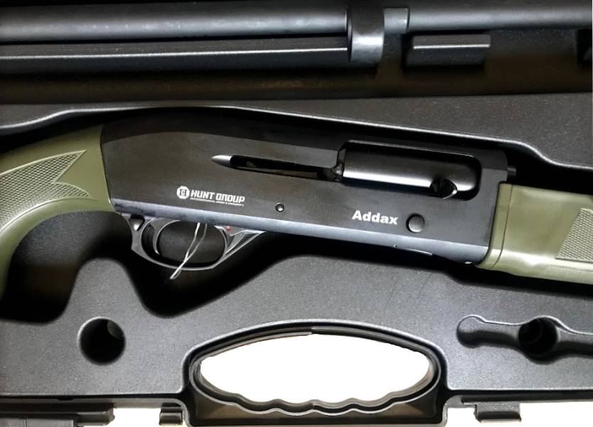 Hunt Group Addax это ружье с инерционной системой перезарядки. Преимущества данной системы – это прежде всего удобство использования. Инерционное ружье легче чистить, и делать это приходится не так часто, как, например, газоотводный полуавтомат. Ружье комплектуется сменными дульными сужениями: в комплекте идет пять сужений, от цилиндра до чока. Это делает ружье достаточно универсальным и позволяет эффективно стрелять не только дробью на коротких и длинных дистанциях по мелкой и крупной дичи, но и различными пулевыми патронами. Приклад оснащается мягким резиновым затыльником, на рукоять и цевье нанесена специальная насечка для улучшения сцепления с руками стрелка. В качестве прицельных приспособлений используется вентилируемая прицельная планка и оптоволоконная мушка. В базовой комплектации идет трубчатый подствольный магазин на 4 патрона. Но конструкция позволяет увеличить его при помощи специальных удлинителей и нарастить емкость магазина, что дает неоспоримое преимущество при охоте на водоплавающую дичь из засидки.