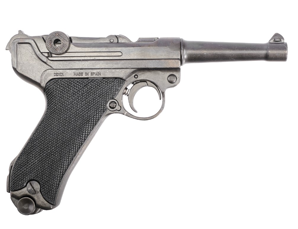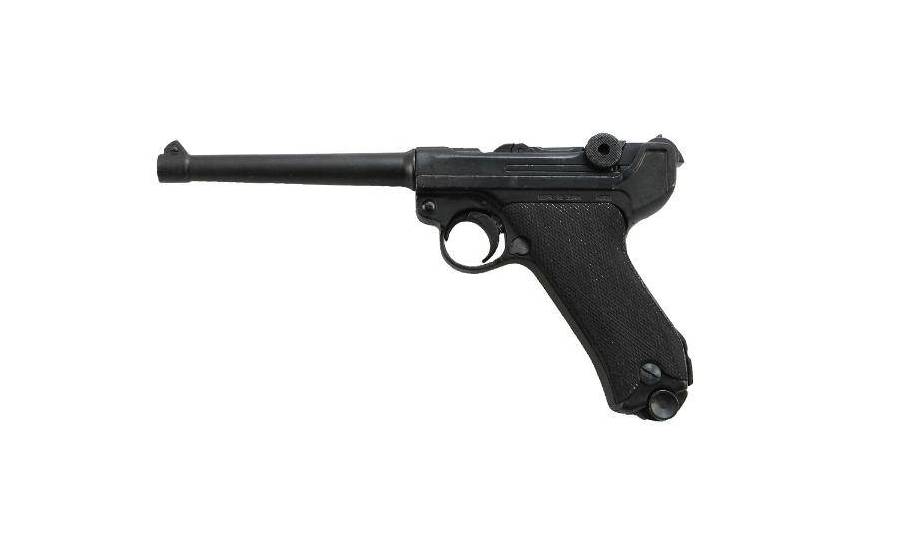 Массогабаритный макет пистолета Люгер P08 DE-1144 с удлиненным стволом 30 см представляет собой модель всем известного пистолета Luger Р.08, он же Парабеллум "Морской".