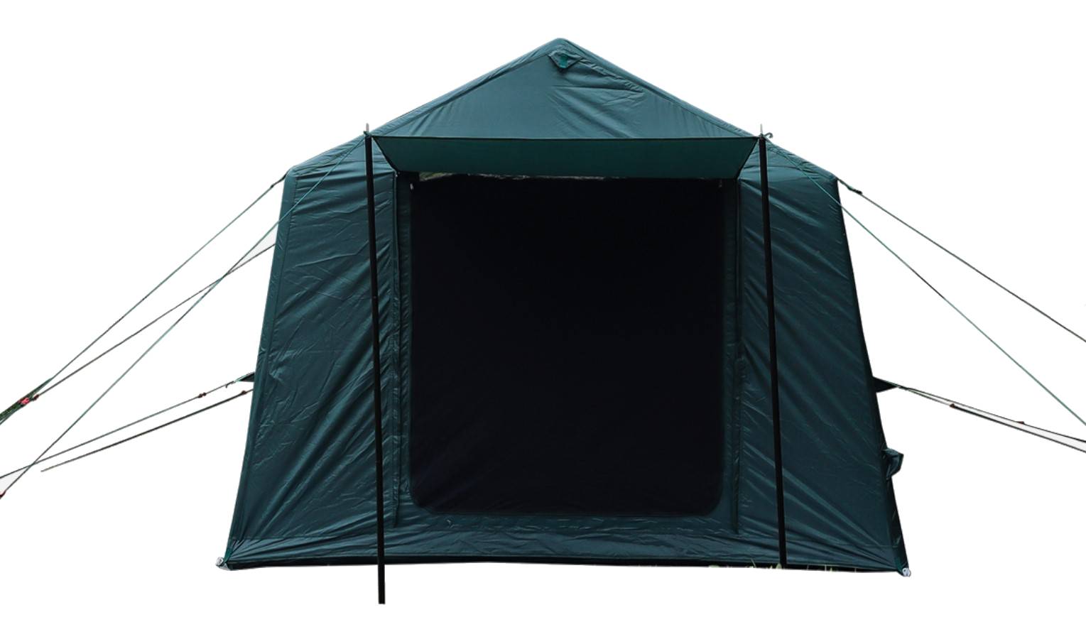 Окна и дверные проемы дополнены слоем прозрачного ПВХ и москитной сеткой, что обеспечивает хорошую вентиляцию в жаркое время года, а также надежно защищает от назойливых насекомых. Наличие съемной полочки из сетчатого материала позволяет разместить различное снаряжение и прочие мелочи для удобной организации пространства внутри палатки
