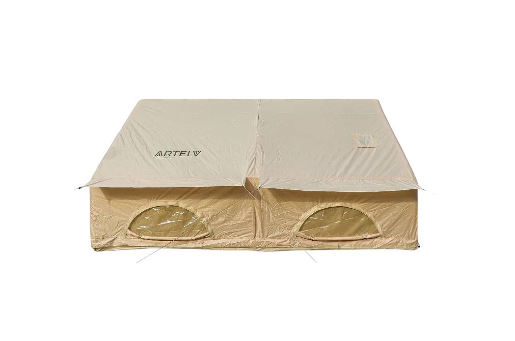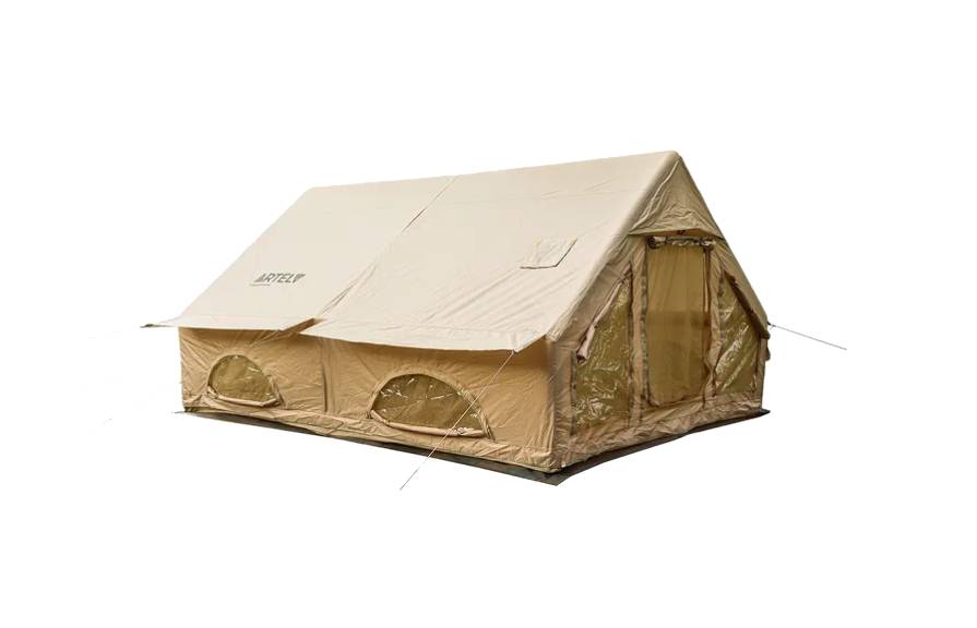 Бежевая надувная палатка TISO-L от ARTELV – двухкомнатная, рассчитана на 8 человек, с удобным расположением окон, дверей и разделкой для установки печи-буржуйки. Благодаря замене традиционных стоек воздушными балками, палатка собирается в считанные минуты, отличается повышенной стойкостью к штормовым порывам ветра. Зафиксированные штормовыми оттяжками, жесткие надувные колонны надежно удерживают конструкцию при порывах ветра до 25 м/с, что исключает необходимость в дополнительном усилении. Проклеивание соединений с последующей прошивкой гарантирует герметичность и стойкость к разрыву, фирменная фурнитура YKK – продолжительную и интенсивную эксплуатацию без ремонта и замены.