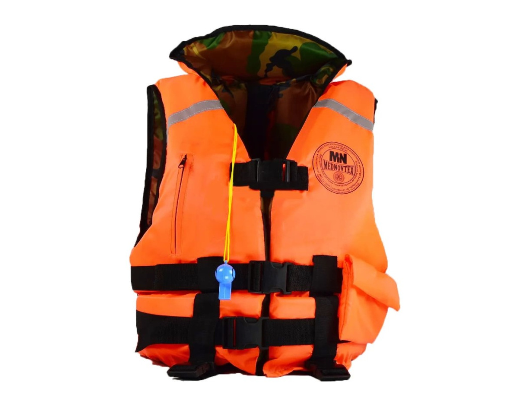Сертифицированный спасательный жилет MedNovTex является индивидуальным страховочным средством, предназначенным для поддержания человека на воде (открытые водоемы, аквапарки и т.д). Выполнен из влагозащитной ткани Оксфорд оранжевой и камуфляжной расцветок. Внутренний слой жилета сделан из подкладочной ткани. Наполнитель - вспененный пенополиэтилен. Светоотражающая полоса расположена в верхней части спереди и на воротнике. Воротник выполняет поддерживающую функцию. Застежка изделия 2 фастекса с возможностью регулировки.