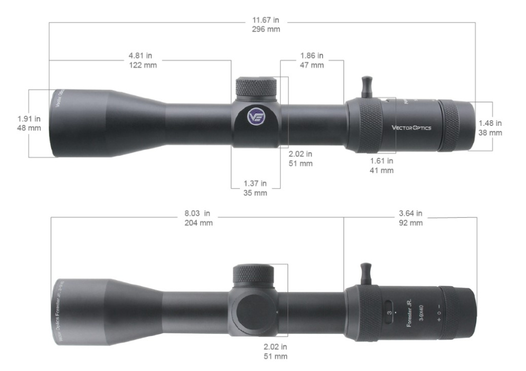 Прицел Vector Optics Forester Jr. 3-9x40 (без подсветки) подходит для целевой стрельбы при дневном освещении на средние и ближние дистанции, в том числе для ходовой охоты, спортивно-развлекательной и практической стрельбы по малоподвижным и стационарным мишеням. Простой надёжный «универсал» с закрытыми барабанами и креплением-кольцами на планку Weaver. Рекомендована установка на огнестрельное оружие до 308 калибра включительно.