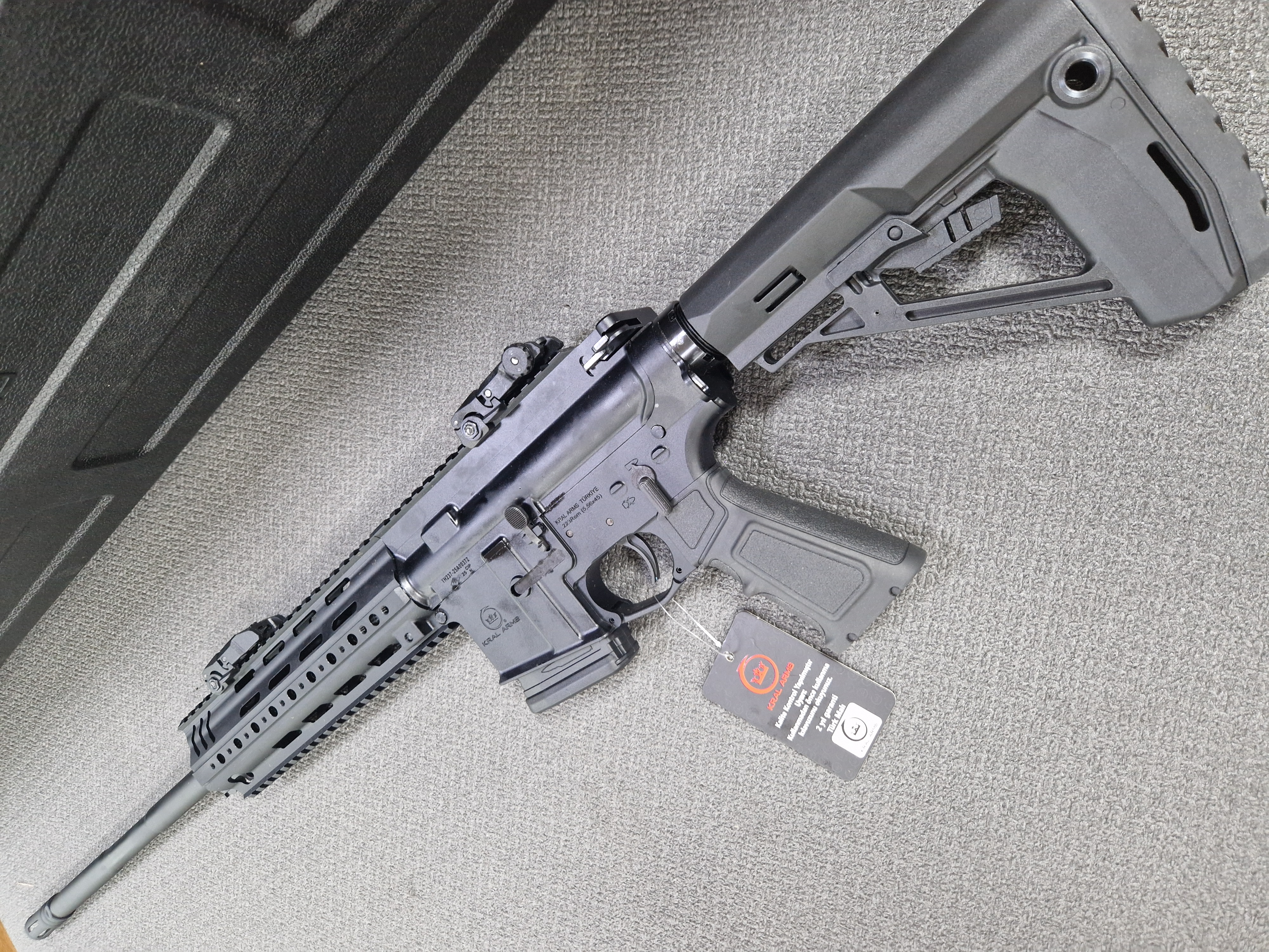 Карабин оснащен типовой для AR-платформы кнопкой досылателя (Forward Assist). Приклад выполнен из пластика, телескопический, с возможностью регулировки (3 фиксированных положения). Магазин - отъемный, коробчатый.