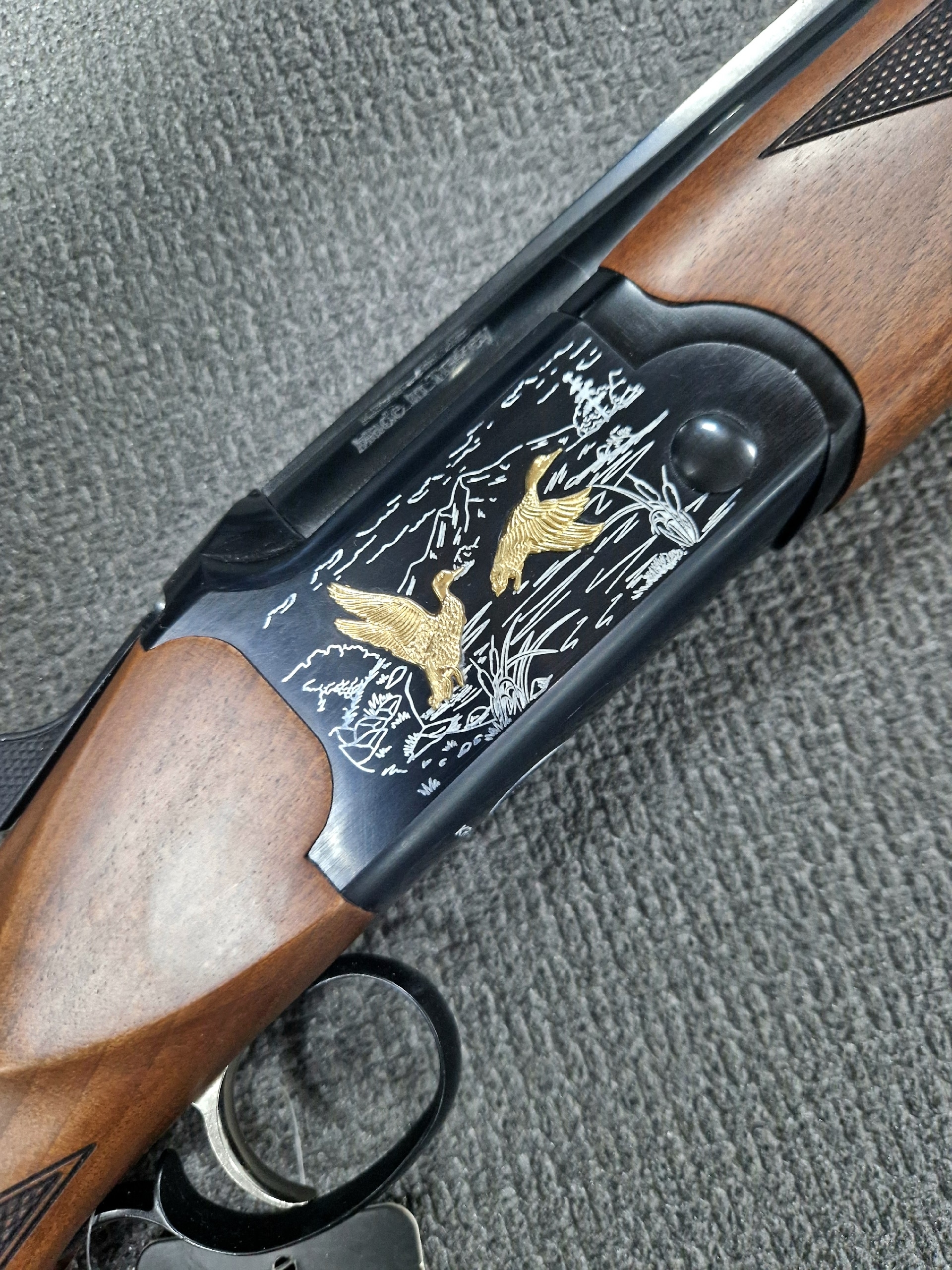 Эстетичное двуствольное ружье Kral Tundra A кал.12/76 с гравировкой “Золотые утки”.