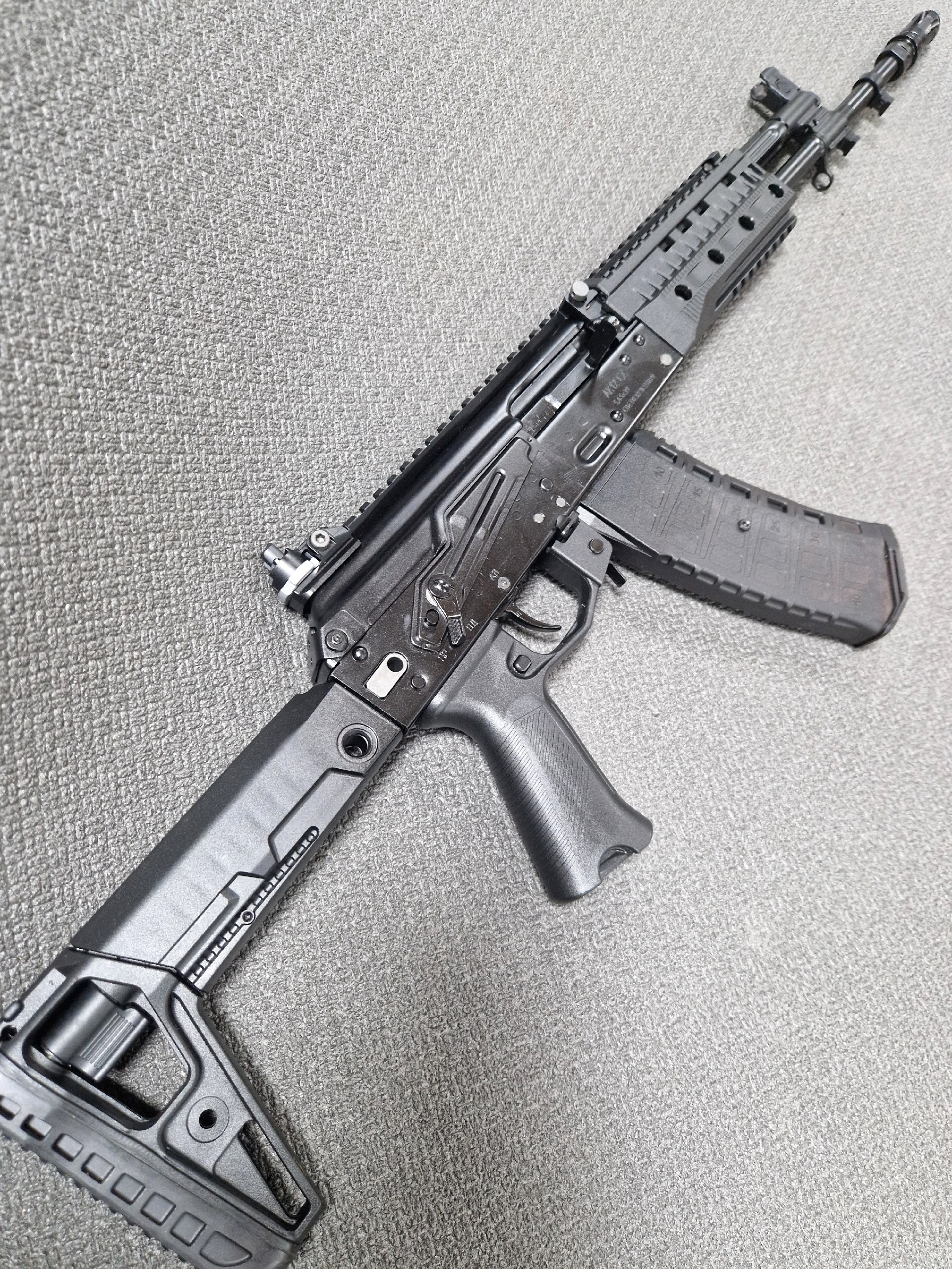 Охолощенный автомат АК12 СХ изготовлен на базе новейшего автомата Калашникова третьего поколения. Максимально возможная аутентичность с боевым образцом, есть возможность сборки-разборки. Производит имитацию выстрела с применением светошумовых патронов 5,45х39.